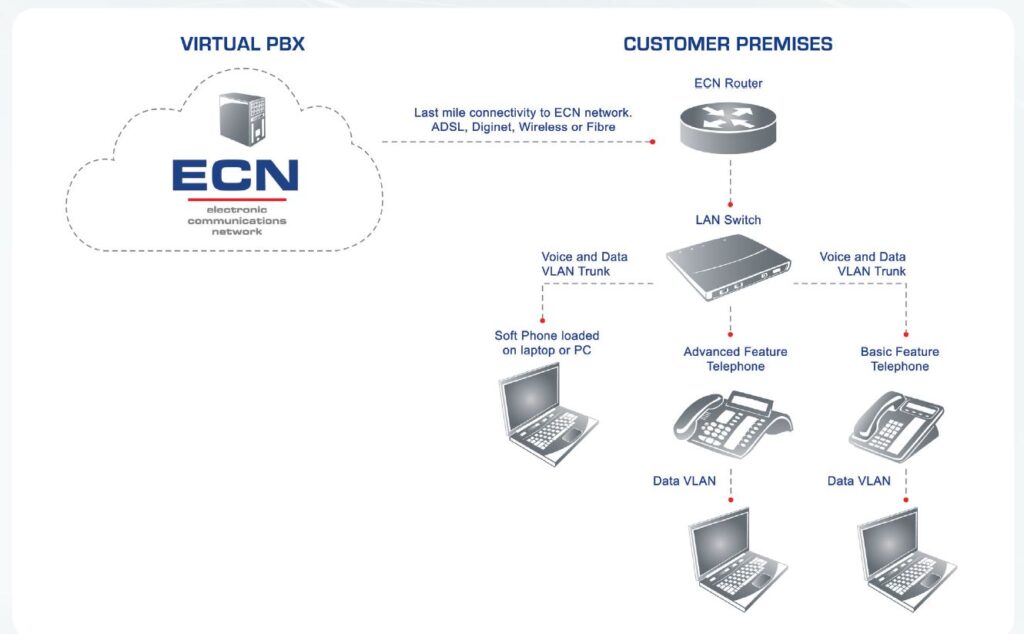 Virtual PBX (VBX) from ECN offers a high quality communications service. With its advanced PBX features and being permanently ”on” in the cloud, Virtual PBX from ECN gives your business a leading advantage.